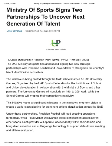 4/18/25, 9:00 AM Ministry Of Sports Signs Two Partnerships To Uncover Next Generation Of Talent - UrduPoint