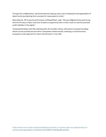 with the Ministry of Sport and look forward to supporting them in their vision to identify talented