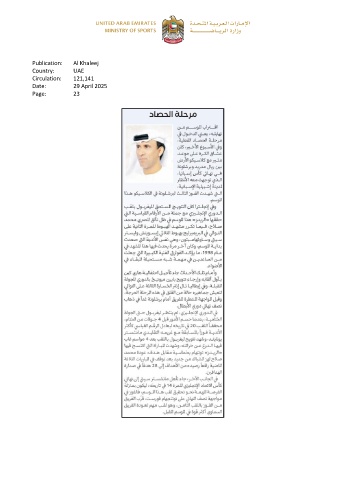 Publication: Al Khaleej Country: UAE Circulation: 121,141 Date: 29 April 2025 Page: 23