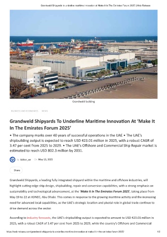 Grandweld Shipyards to underline maritime innovation at ‘Make It In The Emirates Forum 2025’ | Web Release