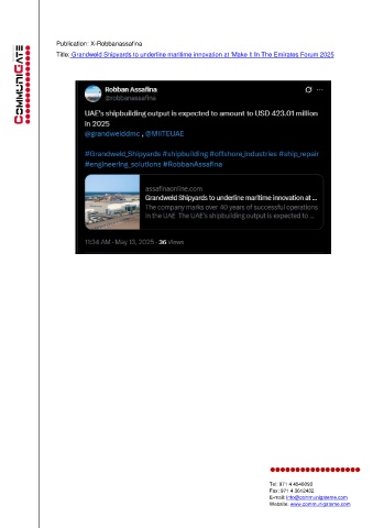 Publication: X-Robbanassafina Title: Grandweld Shipyards to underline maritime innovation at 'Make It In The Emirates Forum 2025 Tel: 971 4 4546093 Fax: 971 4 3612432 E-mail: info@communigateme.com Website: www.communigateme.com
