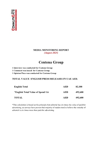 TOTAL VALUE ENGLISH PRESS RELEASES IN UAE AED.