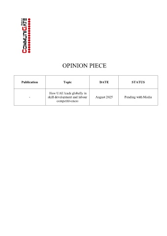 OPINION PIECE Publication Topic DATE STATUS How UAE leads globally in - skill development and labour August 2025 Pending with Media competitiveness