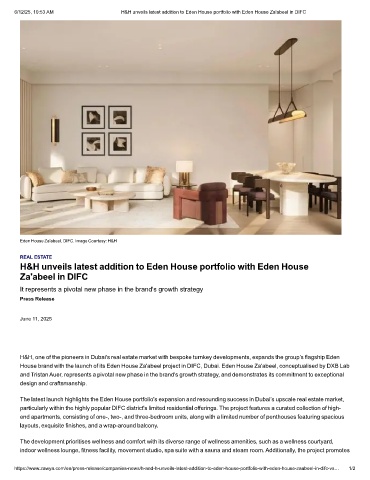 https://www.zawya.com/en/press-release/companies-news/h-and-h-unveils-latest-addition-to-eden-house-portfolio-with-eden-house-zaabeel-in-difc-vs… 1/2