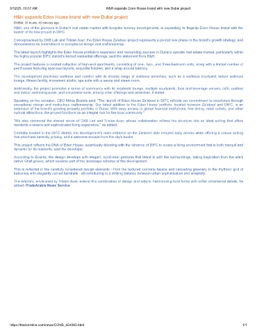 6/12/25, 10:57 AM H&H expands Eden House brand with new Dubai project