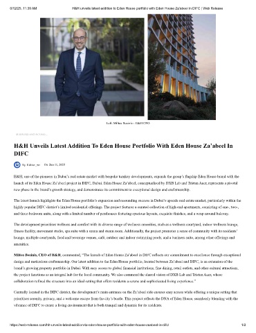 6/12/25, 11:39 AM             H&H unveils latest addition to Eden House portfolio with Eden House Za'abeel in DIFC | Web Release