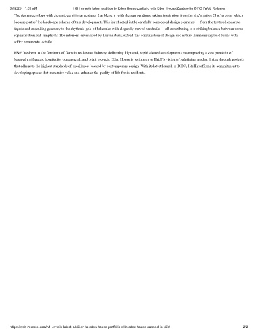 6/12/25, 11:39 AM             H&H unveils latest addition to Eden House portfolio with Eden House Za'abeel in DIFC | Web Release