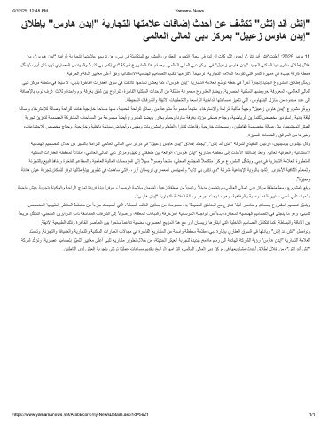 نﻣ ،"سوﺎھ ندﯾإ" ةدﺋارﻟا ﺔﯾرﺎﺟﺗﻟا ﺎﮭﺗﻣﻼﻋ ﻊﯾﺳوﺗ نﻋ ،ﻲﺑد ﻲﻓ ﺔﻠﻣﺎﻛﺗﻣﻟا ﻊﯾرﺎﺷﻣﻟاو يرﺎﻘﻌﻟا رﯾوطﺗﻟا لﺎﺟﻣ ﻲﻓ ةدﺋارﻟا تﺎﻛرﺷﻟا ىدﺣإ ،"شﺗإ دﻧأ شﺗإ"تﻧﻠﻋأ :2025 وﯾﻧوﯾ 11