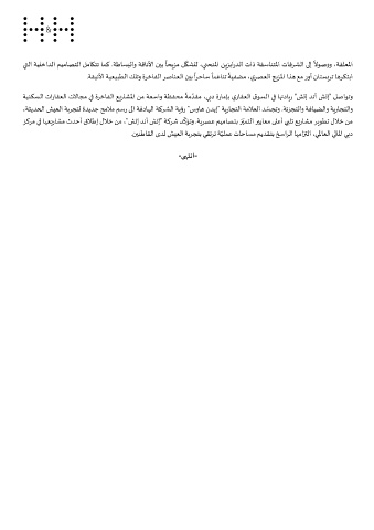 ةينكسلا تاراقعلا تلااجم يف ةرخافلا عيراشلما نم ةعساو ةظفحم ةمدقم ،يبد ةرامإب يراقعلا قوسلا يف اهتداير "شتإ دنأ شتإ" لصاوتو