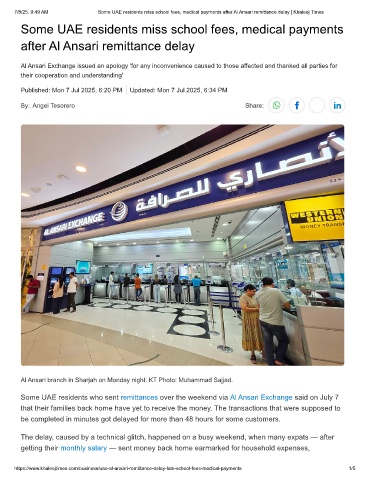 7/8/25, 9:49 AM Some UAE residents miss school fees, medical payments after Al Ansari remittance delay | Khaleej Times