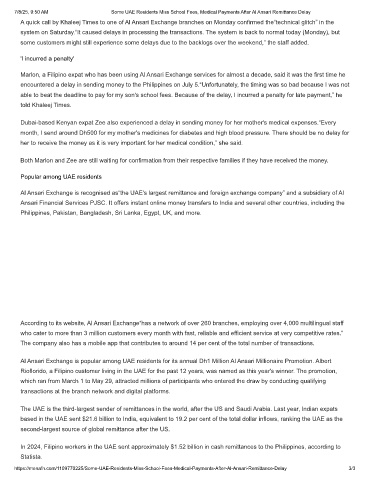 7/8/25, 9:50 AM Some UAE Residents Miss School Fees, Medical Payments After Al Ansari Remittance Delay