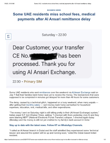 7/8/25, 9:50 AM Some UAE residents miss school fees, medical payments after Al Ansari remittance delay