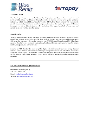 Blue  Remit  (previously  known  as  Worldwide  Cash  Express),  a  subsidiary  of  the Al Ansari  Financial