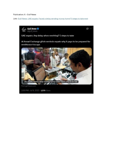 Publication: X – Gulf News Link: Gulf News: UAE expats: Faced a delay sending money home? 5 steps to take next