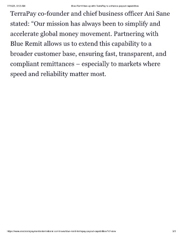7/15/25, 9:53 AM Blue Remit ties up with TerraPay to enhance payout capabilities