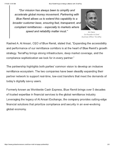 7/15/25, 9:54 AM Blue Remit forges strategic alliance with TerraPay
