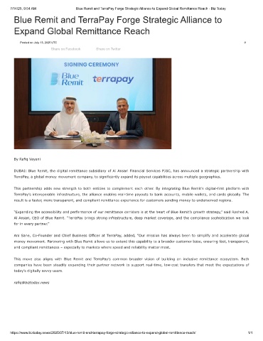 7/14/25, 9:54 AM Blue Remit and TerraPay Forge Strategic Alliance to Expand Global Remittance Reach - Biz Today