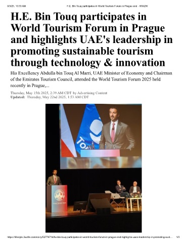 https://lifestyle.3wzfm.com/story/52776714/he-bin-touq-participates-in-world-tourism-forum-in-prague-and-highlights-uaes-leadership-in-promoting-sust… 1/3
