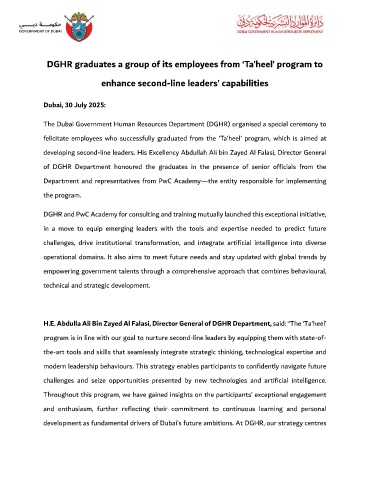 developing second-line leaders. His Excellency Abdullah Ali bin Zayed Al Falasi, Director General