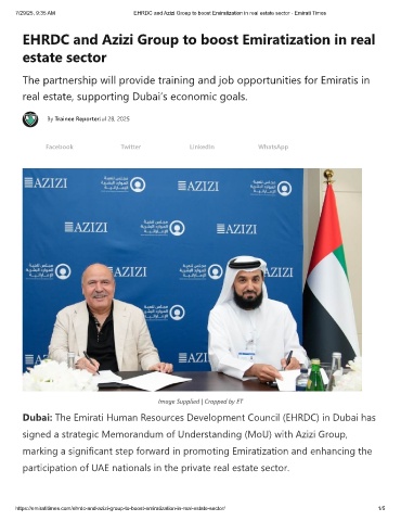 7/29/25, 9:35 AM EHRDC and Azizi Group to boost Emiratization in real estate sector - Emirati Times