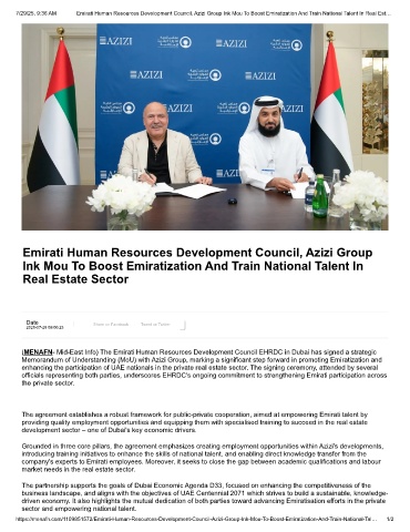 https://menafn.com/1109851572/Emirati-Human-Resources-Development-Council-Azizi-Group-Ink-Mou-To-Boost-Emiratization-And-Train-National-Tal… 1/2
