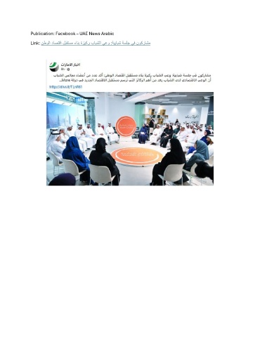 Publication: Facebook – UAE News Arabic Link: نطولا داصتقا لبقتسم ءانب ةزيكر بابشلا يعو :ةيبابش ةسلج يف نوكراشم