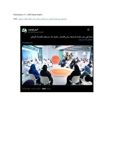 Publication: X – UAE News Arabic Link: نطولا داصتقا لبقتسم ءانب ةزيكر بابشلا يعو :ةيبابش ةسلج يف نوكراشم