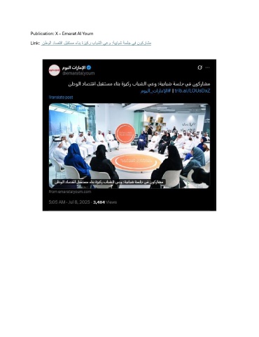 Publication: X – Emarat Al Youm Link: نطولا داصتقا لبقتسم ءانب ةزيكر بابشلا يعو :ةيبابش ةسلج يف نوكراشم
