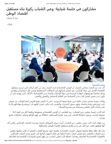 https://a5r5br.net/uae/local-news/6278182-نطوﻟا-دﺎﺻﺗﻗا-لﺑﻘﺗﺳﻣ-ءﺎﻧﺑ-ةزﯾﻛر-بﺎﺑﺷﻟا-ﻲﻋو-ﺔﯾﺑﺎﺑﺷ-ﺔﺳﻠﺟ-ﻲﻓ-نوﻛرﺎﺷﻣ#google_vignette 1/3