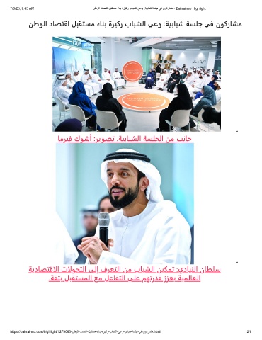 7/8/25, 9:45 AM نطوﻟا دﺎﺻﺗﻗا لﺑﻘﺗﺳﻣ ءﺎﻧﺑ ةزﯾﻛر بﺎﺑﺷﻟا ﻲﻋو :ﺔﯾﺑﺎﺑﺷ ﺔﺳﻠﺟ ﻲﻓ نوﻛرﺎﺷﻣ - Bahrainso Highlight