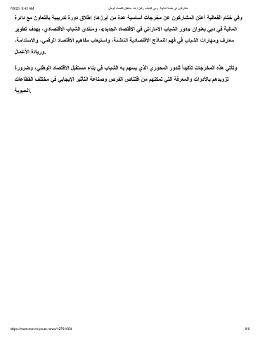 رﯾوطﺗ فدﮭﺑ ،يدﺎﺻﺗﻗﻻا بﺎﺑﺷﻟا ىدﺗﻧﻣو ،«دﯾدﺟﻟا دﺎﺻﺗﻗﻻا ﻲﻓ ﻲﺗارﺎﻣﻹا بﺎﺑﺷﻟا رود» ناوﻧﻌﺑ ﻲﺑد ﻲﻓ ﺔﯾﻟﺎﻣﻟا
