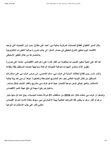 يدﺎﺻﺗﻗا زﻛرﻣﻛ ةرﺎﻣﻹا ﺔﻧﺎﻛﻣ دﻛؤﯾو ،ﻲﺑد ﻲﻓ لﺎﻣﻋﻷا ﺔﺋﯾﺑﺑ ﺔﯾﻣﻟﺎﻌﻟا تﺎﻛرﺷﻟا ﺔﻘﺛ سﻛﻌﯾ ﺎﻣ وھو ،رﺛﻛأ وأ مھرد