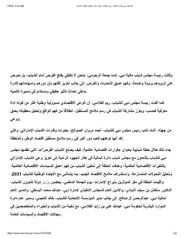 ﻲﺗﻟاو ،ﻲﺗارﺎﻣﻹا بﺎﺑﺷﻟا تاردﻗو تارﺑﺧﺑ ،ﺢﻟاوﺻﻟا ناورﻣ دﻣﺣأ ،بﺎﺑﺷﻠﻟ ﻲﺑد سﻠﺟﻣ سﯾﺋر بﺋﺎﻧ دﺎﺷأ ،ﮫﺗﮭﺟ نﻣ