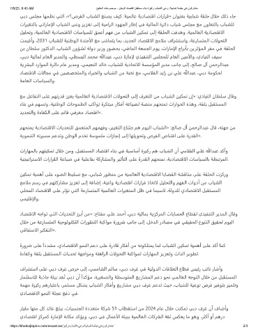 تارﺎﻬﻤﻟﺎﺑ ﻢﻬﻨﻴﻜﻤﺗ لالﺧ ﻦﻣو ،ﻞﺒﻘﺘﺴﻤﻟا دﺎﺼﺘﻗا ءﺎﻨﺑ ﻲﻓ ﺔﻴﺳﺎﺳأ ةﺰﻴﻛر ﻢﻫ بﺎﺒﺸﻟا نأ يسالﻔﻟا ﻲﻠﻋ ﷲﺪﺒﻋ ﺪﻛأو