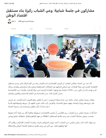 ﺪﻛأ ﻲﺘﻟاو ،ﻲﺗارﺎﻣإلا بﺎﺒﺸﻟا تارﺪﻗو تاﺮﺒﺨﺑ ،ﺢﻟاﻮﺼﻟا ناوﺮﻣ ﺪﻤﺣأ ،بﺎﺒﺸﻠﻟ ﻲﺑد ﺲﻠﺠﻣ ﺲﻴﺋر ﺐﺋﺎﻧ دﺎﺷأ ،ﻪﺘﻬﺟ ﻦﻣ