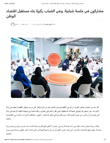7/8/25, 9:45 AM موﯾﻟا تارﺎﻣﻹا – نطوﻟا دﺎﺻﺗﻗا لﺑﻘﺗﺳﻣ ءﺎﻧﺑ ةزﯾﻛر بﺎﺑﺷﻟا ﻲﻋو :ﺔﯾﺑﺎﺑﺷ ﺔﺳﻠﺟ ﻲﻓ نوﻛرﺎﺷﻣ