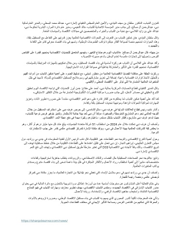 صانتقا ىلع ةردقلا مهحنمي ةيداصتقلاا تايدحتلل قمعتملا مهمهفو ،رييغتلا عانُص مه مويلا بابشلا« :حلاص لآ نمحرلادبع لاق ،هتهج نم