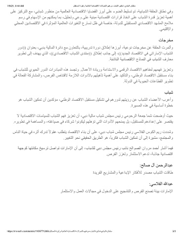 ﺮﯾﻮﻄﺗ ﻰﻟإ فﺪﮭﯾ يﺬﻟا ،((يدﺎﺼﺘﻗﻻا بﺎﺒﺸﻟا ىﺪﺘﻨﻣ)) قﻼطإ ﺐﻧﺎﺟ ﻰﻟإ ،((ﺪﯾﺪﺠﻟا دﺎﺼﺘﻗﻻا ﻲﻓ ﻲﺗارﺎﻣﻹا بﺎﺒﺸﻟا