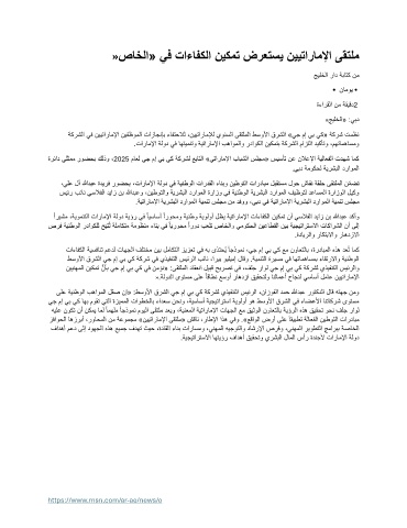 ًاري شم ،ةيومنتلا تاراملإا ةلود ةيؤر يف ًايساسأ ًاروحمو ةينطو ةيولوأ لظي ةيتاراملإا تاءافكلا نيكمت نأ يسلافلا دياز نب اللهدبع دكأو