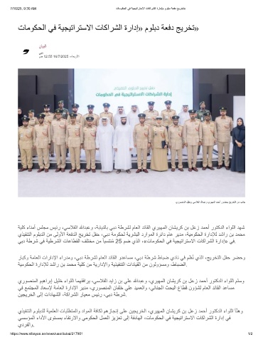 ﻲﺑد ﺔطرﺷ ﻲﻓ ﺔﯾطرﺷﻟا تﺎﻋﺎطﻘﻟا فﻠﺗﺧﻣ نﻣ ً ﺎﺑﺳﺗﻧُﻣ 25 مﺿ يذﻟا ،«تﺎﻣوﻛﺣﻟا ﻲﻓ ﺔﯾﺟﯾﺗارﺗﺳﻻا تﺎﻛارﺷﻟا ةرادإ» ﻲﻓ.