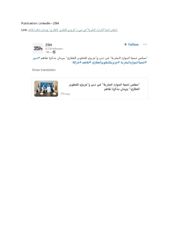 Publication: LinkedIn – 25H Link: مهافت ةركذم نامربي ”يراقعلا ريوطتلل يزيزع”و يبد يف ”ةيرشبلا دراوملا ةيمنت سلجم“