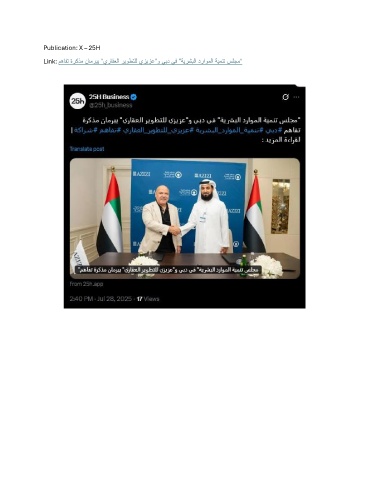 Publication: X – 25H Link: مهافت ةركذم نامربي ”يراقعلا ريوطتلل يزيزع”و يبد يف ”ةيرشبلا دراوملا ةيمنت سلجم“