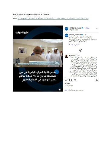 Publication: Instagram - Akhbar Al Emarat Link: يراقعلا عاطقلا يف نيطوتلا زيزعتل مهافت ةركذم نامربي يزيزع ةعومجمو يبد يف ةيرشبلا دراوملا ةيمنت سلجم