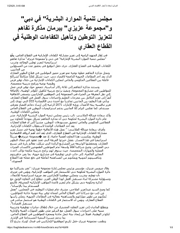 ٍ ﻢھﺎﻔﺗ ةﺮﻛﺬﻣ "يﺰﻳﺰﻋ ﺔﻋﻮﻤﺠﻣ"و ﻲﺑد ﻲﻓ "ﺔﯿﺗارﺎﻣﻹا ﺔﻳﺮﺸﺒﻟا دراﻮﻤﻟا ﺔﯿﻤﻨﺗ ﺲﻠﺠﻣ"