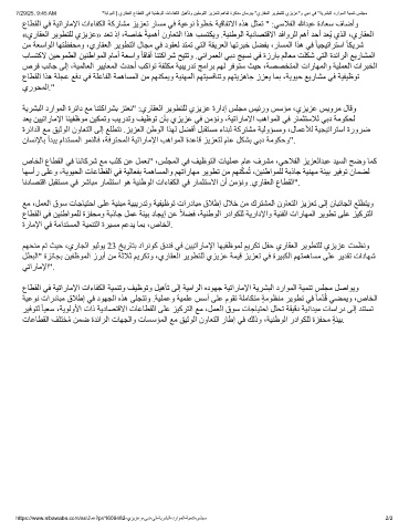 عﺎﻄﻘﻟا ﻲﻓ ﺔﯿﺗارﺎﻣﻹا تاءﺎﻔﻜﻟا ﺔﻛرﺎﺸﻣ ﺰﯾﺰﻌﺗ رﺎﺴﻣ ﻲﻓ ﺔﯿﻋﻮﻧ ًةﻮﻄﺧ ﺔﯿﻗﺎﻔﺗﻻا هﺬھ ﻞﺜﻤﺗ " :ﻲﺳﻼﻔﻟا ﷲﺪﺒﻋ ةدﺎﻌﺳ فﺎﺿأو