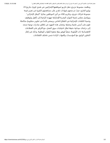 7/30/25, 10:19 AM "يرﺎﻘﻌﻟا عﺎطﻘﻟا ﻲﻓ ﺔﯾﻧطوﻟا تاءﺎﻔﻛﻟا لﯾھﺄﺗو نﯾطوﺗﻟا زﯾزﻌﺗﻟ مھﺎﻔﺗ ةرﻛذﻣ نﺎﻣرﺑﯾ "يزﯾزﻋ ﺔﻋوﻣﺟﻣ"و ﻲﺑد ﻲﻓ "ﺔﯾرﺷﺑﻟا دراوﻣﻟا ﺔﯾﻣﻧﺗ سﻠﺟﻣ