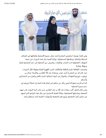 7/31/25, 9:43 AM نوﻛﯾﻠﯾﺳﻠﻟ ﻲﺑد ﺔﺣاو ﻊﻣ نوﺎﻌﺗﻟﺎﺑ ”ﻲﻓرﺣﻟا قوﻔﺗﻟا موﯾ“ ﺔﯾﻟﺎﻌﻓ تﻣﺎﻗا ﺔﯾﺗارﺎﻣﻹا نﯾﻋرﺗﺧﻣﻟا ﺔﯾﻌﻣﺟ