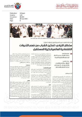 Publication: Al Bayan Country: UAE Circulation: 88,000 Date: 08 July 2025 Page: 8