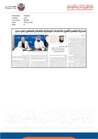 Publication: Al Bayan Country: UAE Circulation: 88,000 Date: 29 July 2025 Page: 6