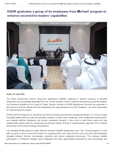 7/31/25, 9:36 AM          DGHR graduates a group of its employees from 禅a'heel' program to enhance second-line leaders' capabilities